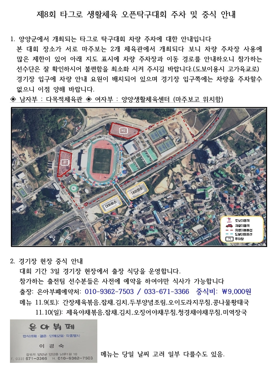 제8회 타그로배 주차 및 중식 안내