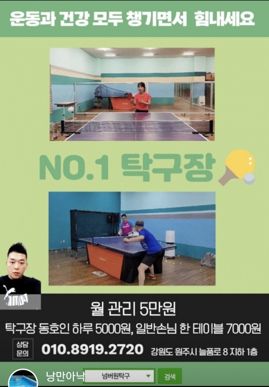 | 탁구장명 | 넘버원탁구클럽 | ||